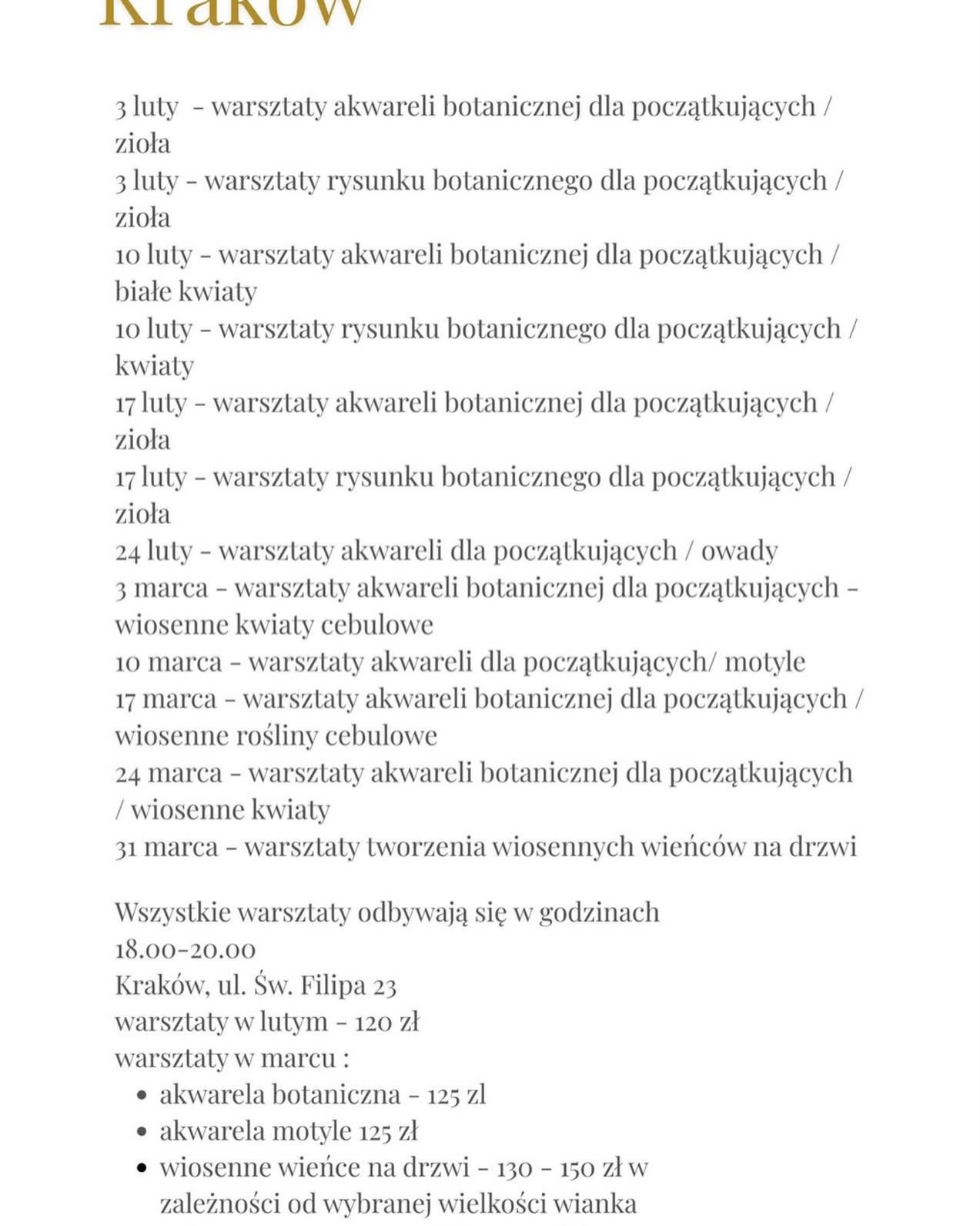 Wszystkie terminy i tematy warsztatów w Krakowie na luty i marzec znajdziecie w ty wpisie